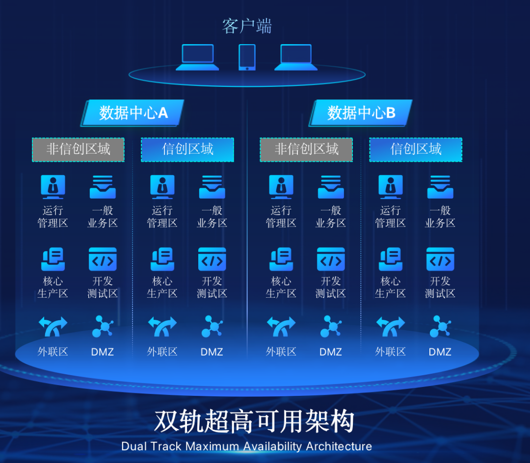 米兰(中国)AC米兰在企业面临自主创新IT基础重构过程中,推出的全新架构双轨超高可用架构(简称DTMAA),在双活数据中心的分区调度基础上,添加每个数据中心内信创域和非信创域的分域调度,来实现分区分域协同的多活双轨超高可用。
